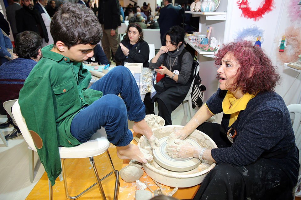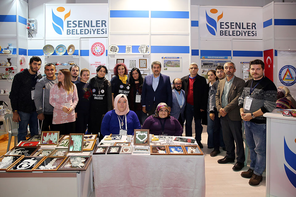 Fuarda Esenler Belediyesi Sosyal Yardım İşleri Müdürlüğü bünyesinde faaliyetlerini sürdüren ESENKOM’un (Esenler Engelliler Koordinasyon Merkezi) standı yoğun ilgi gördü. Tamamen engelli bireyler tarafından yapılan etkinlikler fuara ayrı bir renk kattı. Çömlekten filografiye, cam sanatından ebruya kadar birçok etkinlik düzenlenen stand da en büyük ilgiyi, doğuştan kolları olmayan ve iki ayağı ile çömlek tornasında çömlekten vazo yapan Muhammet Uğur Bitkay gördü.