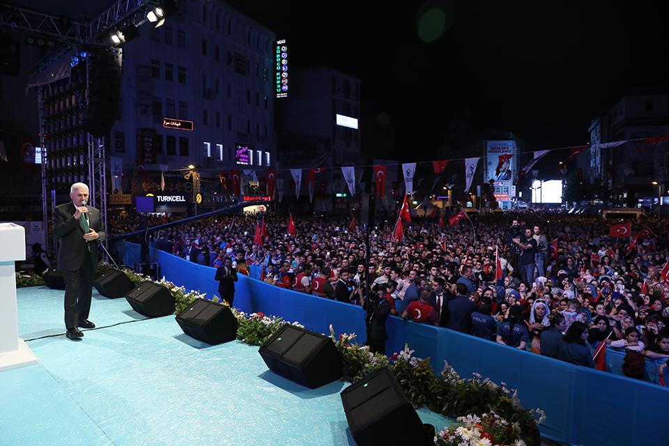 Vatandaşların bayramdan sonra 23 Haziran’daki seçim için İstanbul’da olmalarını isteyen Yıldırım, “Bayramdan sonra İstanbul’a geri dönüyoruz değil mi? Çünkü 23 Haziran’da İstanbul Bayramı var. İstanbul Bayramı’nı birlikte kutlayalım, yeni bir destan yazalım” dedi.