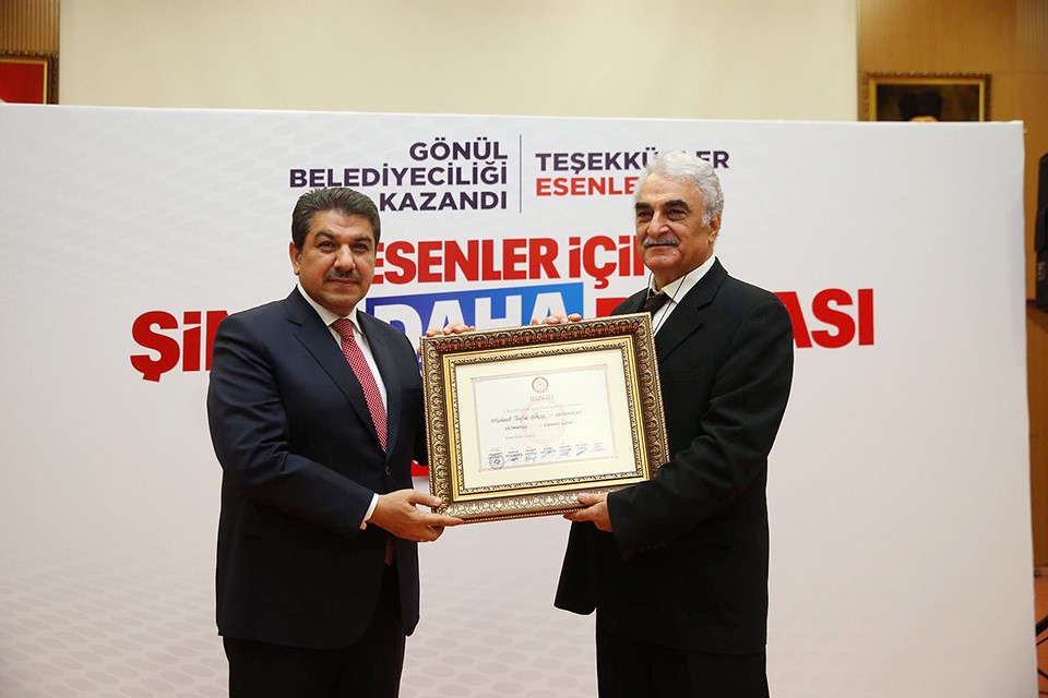 AK Parti Esenler İlçe Başkanı Umut Özkan, MHP İlçe Başkanı Suat Yılmaz, CHP İlçe Başkanı Bülent Ütebay, İYİ Parti İlçe Başkanı Recep Özkan’ın da katıldığı törende; 5 yıl Esenler Belediye Meclisi’nde görev yapacak yeni meclis üyeleri de mazbatalarını aldılar. Esenler Belediye Başkanı M. Tevfik Göksu İlçe Seçim Kurulu’nda görev yapanlara birer çiçek takdim ederek seçim boyunca gösterdikleri yoğun çalışmalardan dolayı teşekkür etti. Mazbataların takdiminden sonra Esenler Belediye Başkanı ve parti ilçe başkanları hep birlikte yeni meclis üyeleri ve muhtarlarla birer hatıra fotoğrafı çektirdiler.