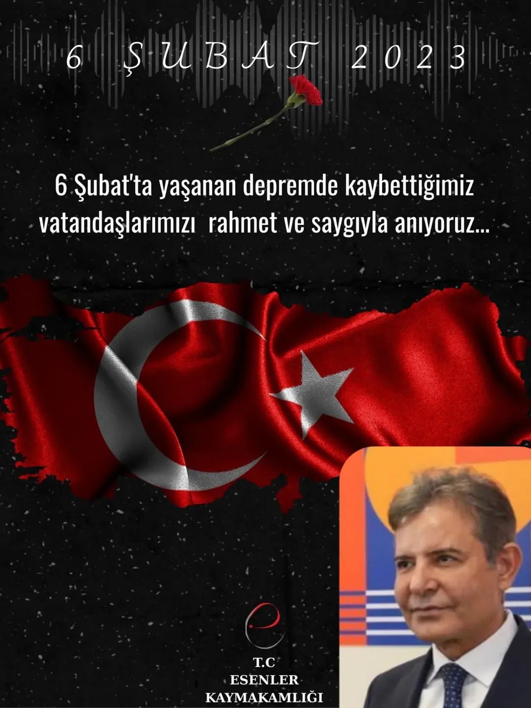 Esenler Kaymakamı Sayın Süleyman Özçakıcı, 6 Şubat depremlerinin yıl dönümü dolayısıyla bir mesaj yayımlayarak hayatını kaybeden vatandaşları rahmetle andı.
