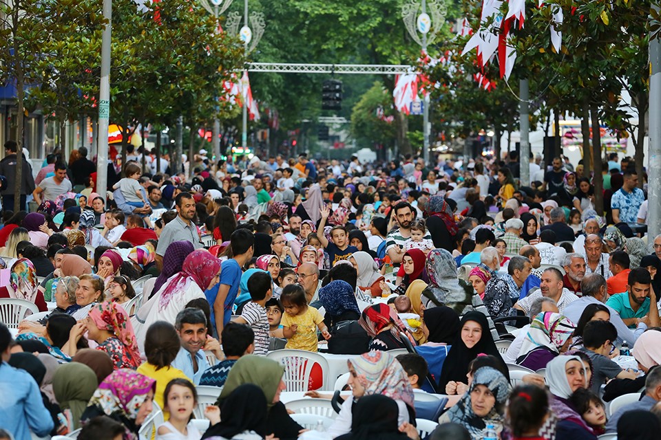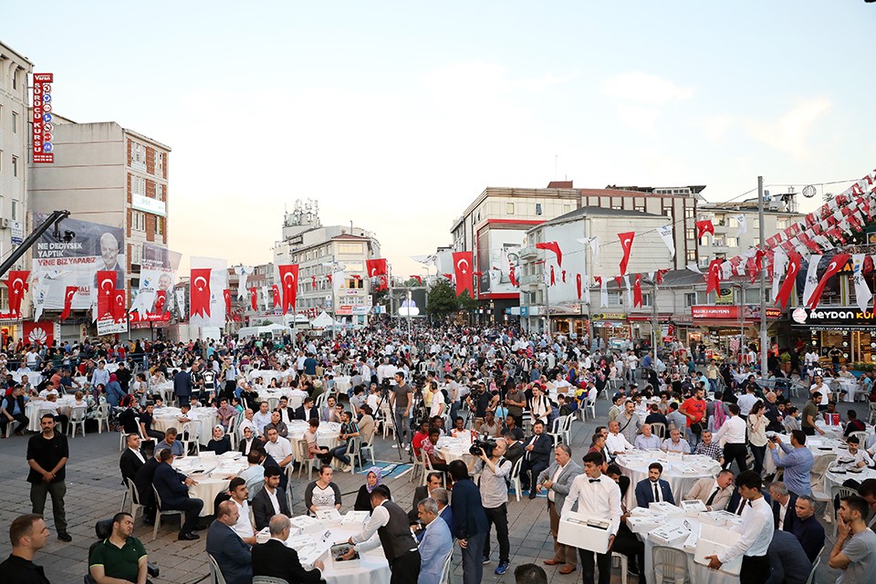 Esenler Belediyesi’nin Esenler Dörtyol Meydanı’nda kurduğu “Yeryüzü Kardeşlik Sofrası”nda 20 bin Esenlerli iftar yaptı. Balkanlar, Afrika ve Asya’nın 48 ülkesinden 100 kişinin de yer aldığı iftarda, çeşitli yöresel lezzetler de yeryüzü kardeşliğini pekiştirdi. Esenlerliler’in de evlerinde yapıp getirdikleri yemekler ise, Ramazan’ın paylaşım ruhunu ortaya koydu. Programa Esenler Belediye Başkanı Mehmet Tevfik Göksu’nun yanı sıra AK Parti Genel Başkanvekili Numan Kurtulmuş ve çok sayıda kişi katıldı. Kurtulmuş ve Göksu, sofraları gezerek vatandaşlarla sohbet ettiler.