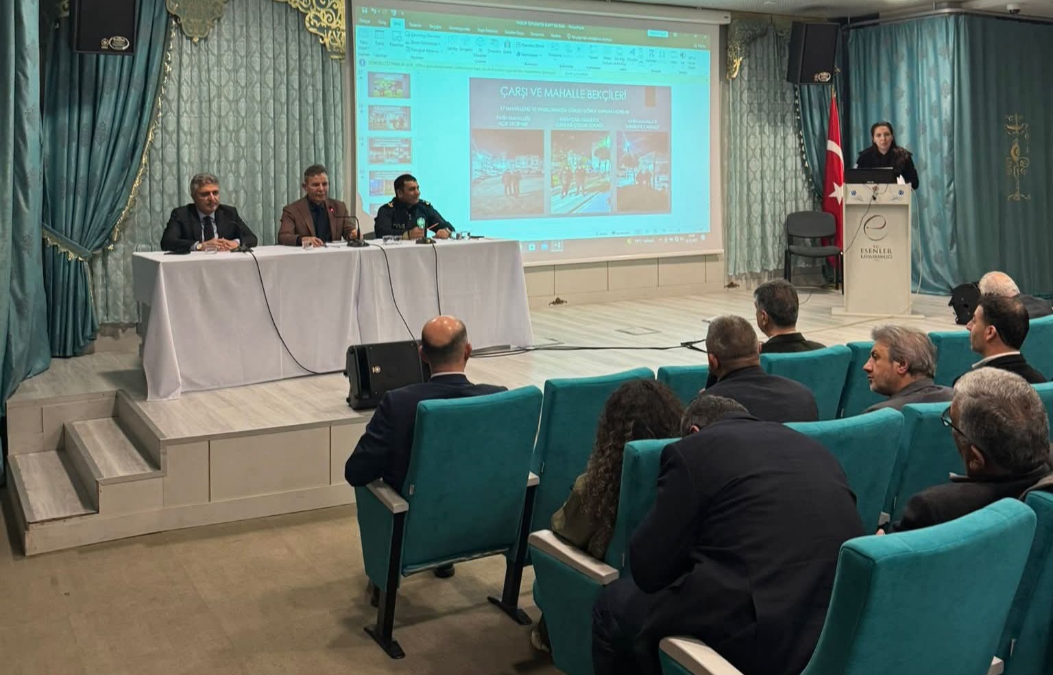 Esenler Kaymakamlığı Konferans Salonu’nda düzenlenen toplantıya; İlçe Emniyet Müdürü Tuncer Bilici, Esenler Belediye Başkan Yardımcısı Mehmet Kamil Ayata, Esenler İlçe Millî Eğitim Müdürü Feyzullah Sert, mahalle muhtarları, kurum müdürleri, sivil toplum kuruluşlarının temsilcileri ile ilgili birim amirleri katıldı.