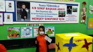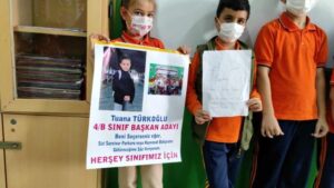 Salgın sebebiyle aylardır kapalı olan okullar, yüz yüze eğitimin başlamasıyla ile birlikte güzel görüntülere sahne olmaya başladı. Esenler Cumhuriyet İlkokulu’nda da tam bir demokrasi şöleni vardı. Okulun 4-B sınıfı sınıf başkanını seçmek için bir kampanya başlattı. Başkanlık için 5’i kız, 4’ü de erkek toplam 9 aday öğrenci kıyasıya yarıştı. Öğrenciler arkadaşlarının oylarını alabilmek için yorucu bir seçim kampanyası yürüttü. Hazırladıkları afiş ve broşürlerle siyasilere taş çıkaran minikler, seçim günü geldiğinde son kez sınıfta arkadaşlarının yüzüne başkan seçildiklerinde yapacaklarını anlattı. Başkan adayları, sınıfın temizliğinden arkadaşlarını Fenerbahçe Stadı’na, hayvanat bahçesine götürmeye, derslerine yardımcı olmadan İstanbul’u gezdirmeye kadar bir dizi vaatlerde bulundu.
