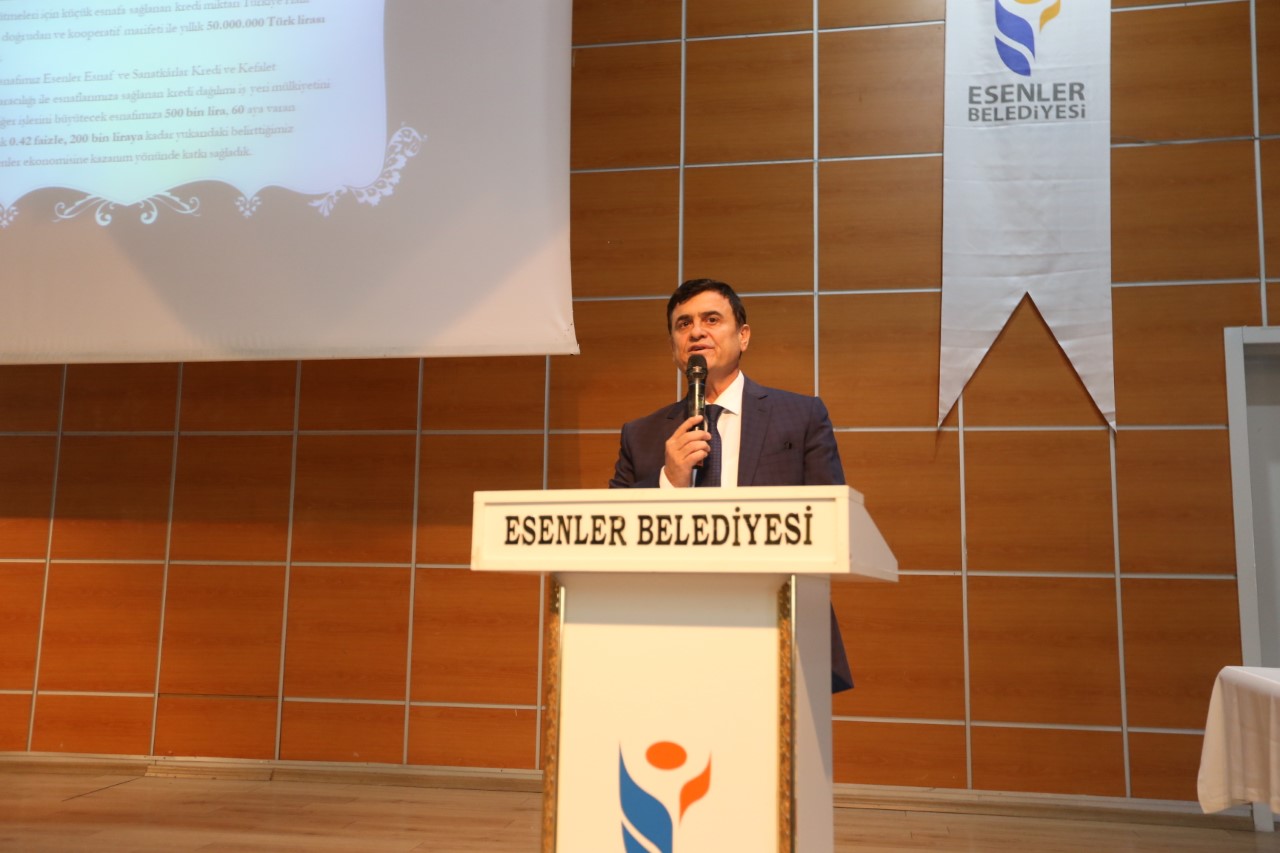 Sunumların ardından konuşma yapan Esenler Kaymakamı Hulusi Şahin, “Esenler’de üretim alanları eskiye nazaran daha iyi bir noktaya gelmiş durumda. Ancak bu alanların daha da artması gerekiyor. Ruhsatsız işletmelerin zapturapt altına alınması da son derece önemli. Esenler konumu itibariyle hizmet sektörünün ağırlıklı olduğu bir yapıya sahip. Devlet Esenler’de üretimin, ticaretin gelişmesi için çok kıymetli  bir arsaya Tekstilkenti ve Giyimkenti inşa etmiş durumda. Fakat burada esnafımıza, sanayicimize de bir  takım görevler düşüyor. Mesela o bölgeyi ağırlıklı olarak depo gibi kullanan esnaflarımız var. Halbuki çok merkezi bir konumda yer alan ve güzel imkânlara sahip bu alanların daha iyi değerlendirilmesi gerekiyor. Biz şu an içinde bulunduğumuz ekonomik bir takım sıkıntılardan çok rahatlıkla kurtulabilecek bir milletiz. Fakat bu noktada şunu ifade etmeliyiz, tasarruftan uzak tüketime dayalı ve dışarıdan geleni harcamak üzerine kurulu zihniyeti kurutmamız gerekiyor. Ahilik ve loncalık diyoruz ya, bizim esnafımızda bu vardı, kanaat. Gelir düzeyimizle orantılı harcama yapmalıyız. Örneğin devletin ekonomiye hareket getirmek amacıyla esnafa verdiği hibeleri, kredileri esnaflarımız araba ve ev yenilemek için kullanmamalı. Bunlar lüks tüketime harcandığı takdirde sonuçları da genellikle acı oluyor. Bu noktada, bizim tasarruf kültürünü çocuklarımızdan yetişkinlere kadar aşılamamız gerekiyor.” ifadelerini kullandı.