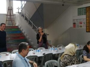İbrahim Turhan Lisesi okul müdürü Tuncay Eyidenbilir kısa selamlama konuşması yaptı. Eyidenbilir, derneğimizin organize ettiği pilav günü programını anlamlı bulduklarını ve her türlü desteği vermeye hazır olduklarını belirterek, gelecek dönem itibariyle okulumuzun İstanbul’da proje okulları arasına girdiğini ve artık puanla öğrenci alacaklarını belirtti.
