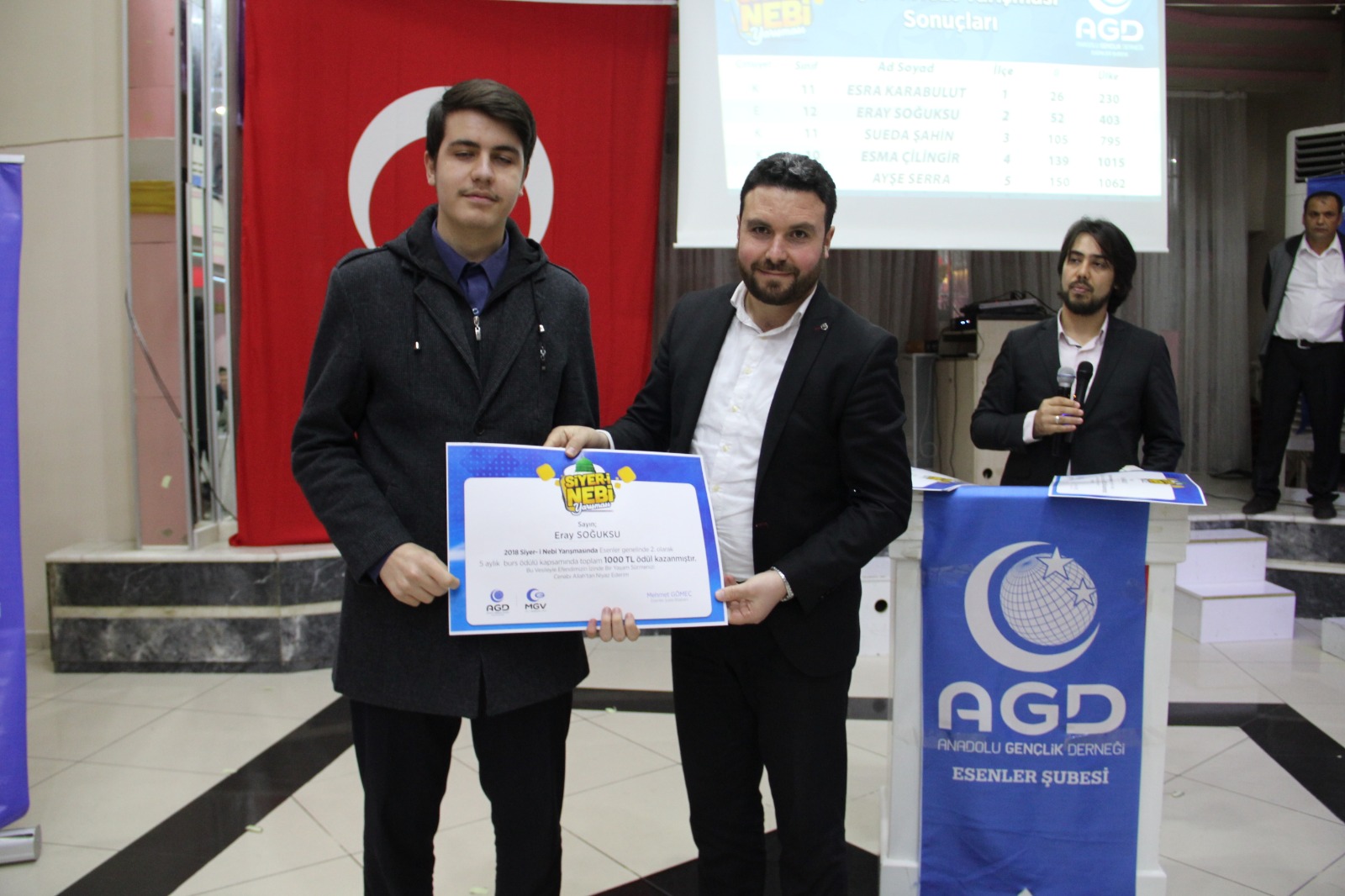 Esenler AGD (Anadolu Gençlik Derneği) Başkanı Mehmet Gömeç gecede yaptığı konuşmada öteden beri bilgili, inançlı ve çalışkan bir nesil yetiştirmenin gayretinde olan müstesna bir kuruluştur.