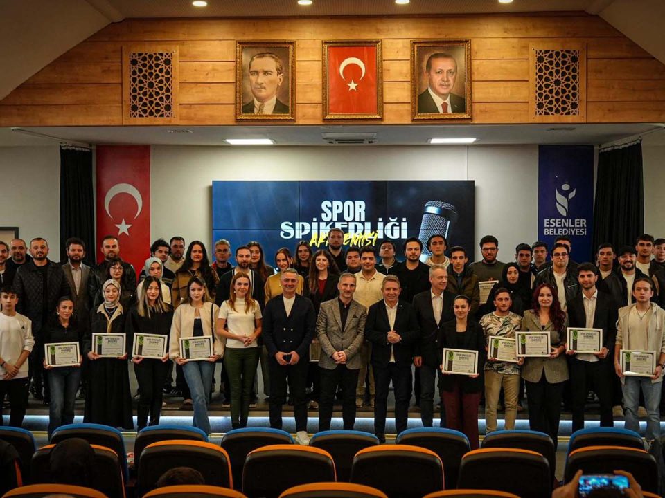 Esenler Belediyesi tarafından düzenlenen Halit Kıvanç Spor Spikerliği Akademisi’nin dördüncü dönemi başarıyla tamamlandı. Sekiz haftalık yoğun eğitim sürecini tamamlayan 45 kursiyer, düzenlenen törenle sertifikalarını aldı.