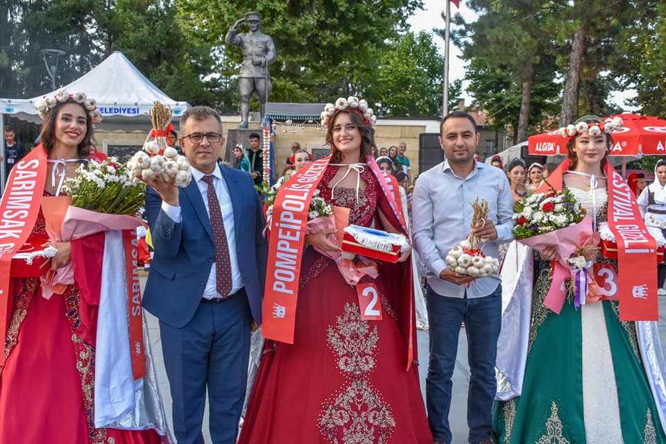 Yoğun ilgi gören Geleneksel Elbiseli Güzellik Yarışması’nda 3 numaralı Feyzanur Gümüş Festival güzeli olurken, 2 numaralı Sude Pamukçu Pompeiopolis güzeli ve 1 umaralı Sahra Alkan ise Sarımsak Güzeli seçildi.