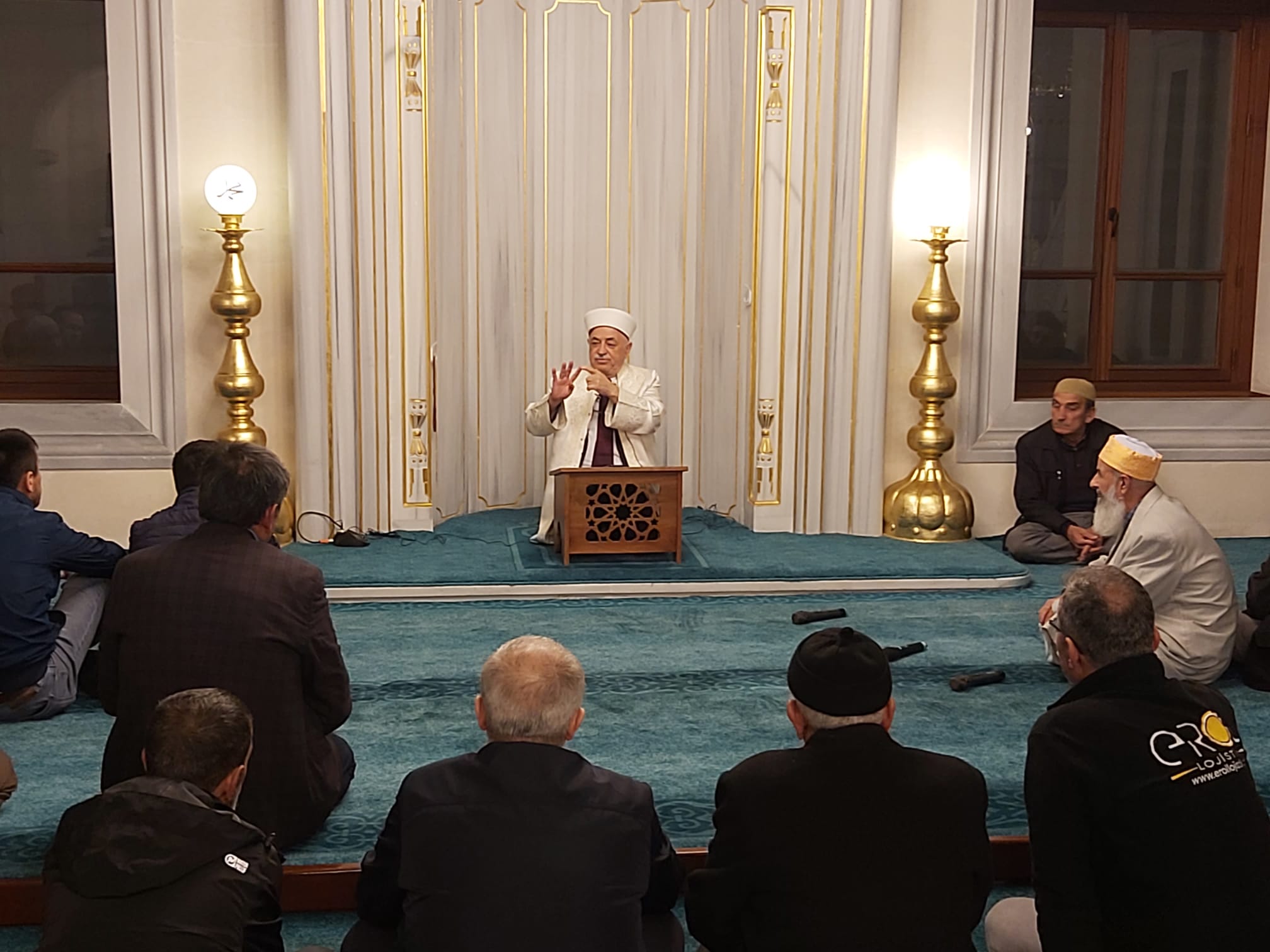 Hacı Emsal Avcı Taş Camii’nde İstanbul emekli başvaizi Mustafa Akgül tarafından verilen sohbetin ardından tasavvuf müziği grubu temcid kasideleri okudu. Programda temcid pilavı ve Osmanlı şerbeti ikram edildi.