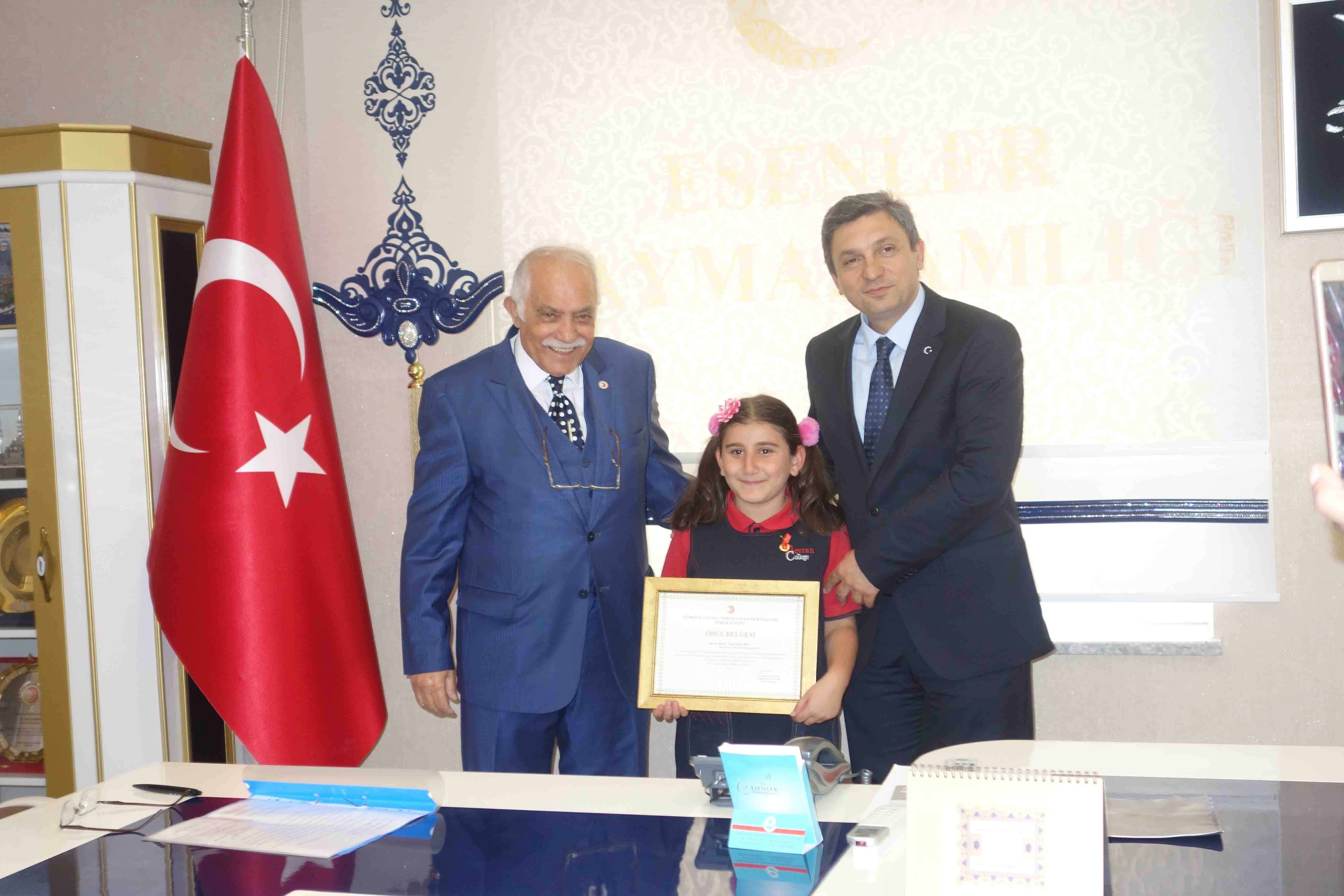 Başkan Yarar’ın verdiği bilgiye göre, Menderes Ortaokulu’ndan Yağmur Yücekaya şiir dalında, Özel Devran Fen Lisesi’nden Ayşe Baver Öztürk kompozisyon dalında, yine Özel Devran Fen Lisesi’nden Berranur Okumuş resim dalında birinci oldular ödüle hak kazandılar. Şampiyonlar ödüllerini ve plaketlerini Esenler Kaymakamı Hulusi Şahin’den aldılar.